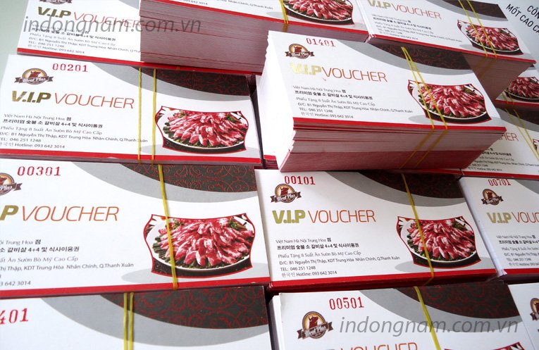 phiếu giảm giá là ấn phẩm không thể thiếu trong chiến lược kinh doanh, giúp tăng cao doanh số, gia tăng kết nối với khách hàng. Indongnam đã thiết kế, in phiếu quà tặng, in phiếu giảm giá cho rất nhiều doanh nghiệp bán lẻ tại Hà Nội. Có rất nhiều mẫu thiết kế in phiếu quà tặng ấn tượng và độc đáo tại phòng thiết kế của indongnam để khách hàng chọn lựa. Các loại giấy dùng in phiếu quà tặng, phiếu giảm giá cũng rất đa dạng, từ giấy phổ thông đến giấy mỹ thuật cao cấp.